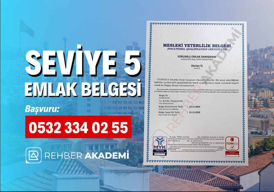 Seviye 5 Emlak Belgesi başvurularınızı Türkiye genelinde 42 ilde sınav merkezi bulunan Rehber Akademi üzerinden kolayca yapabilirsiniz.